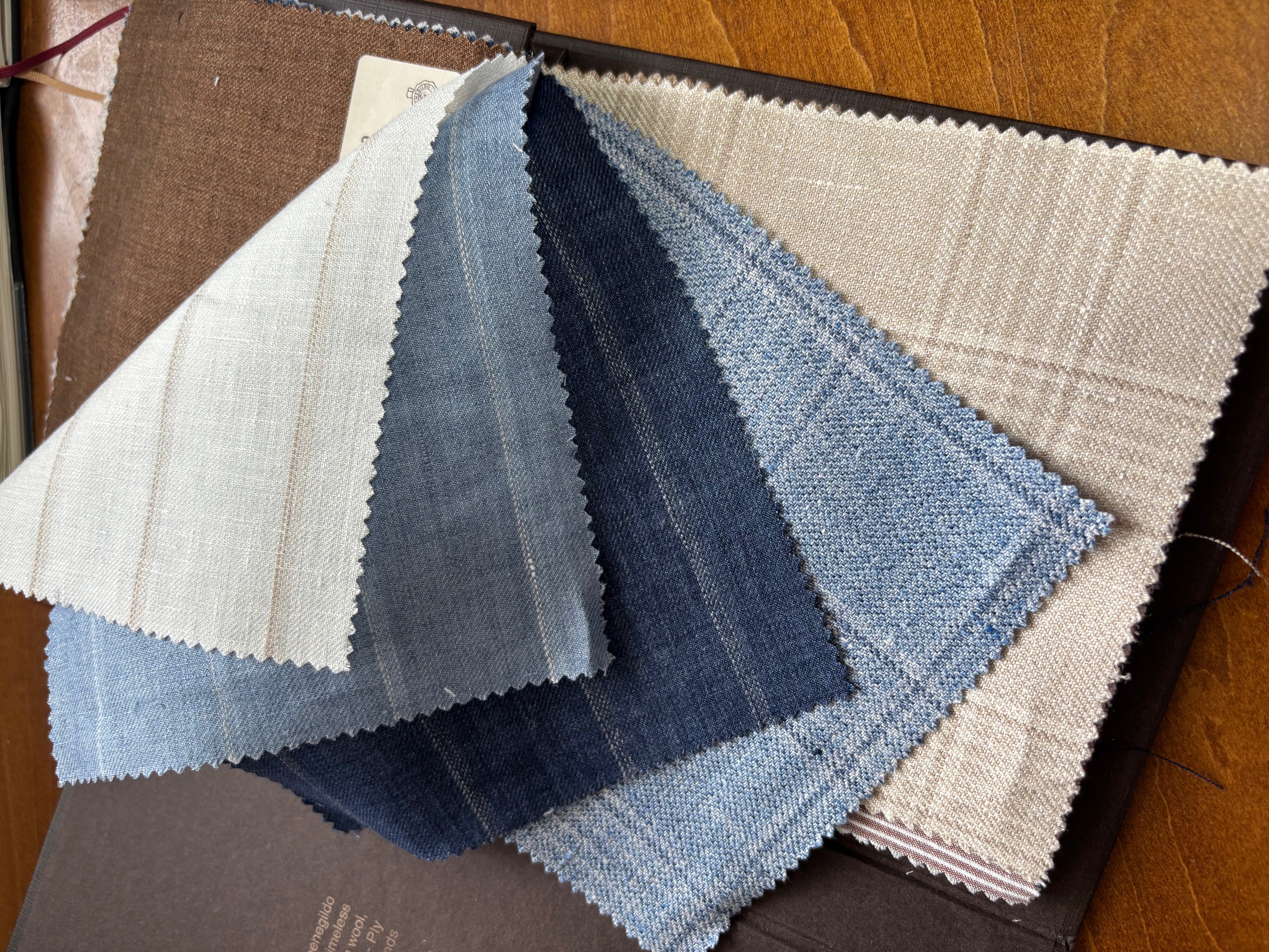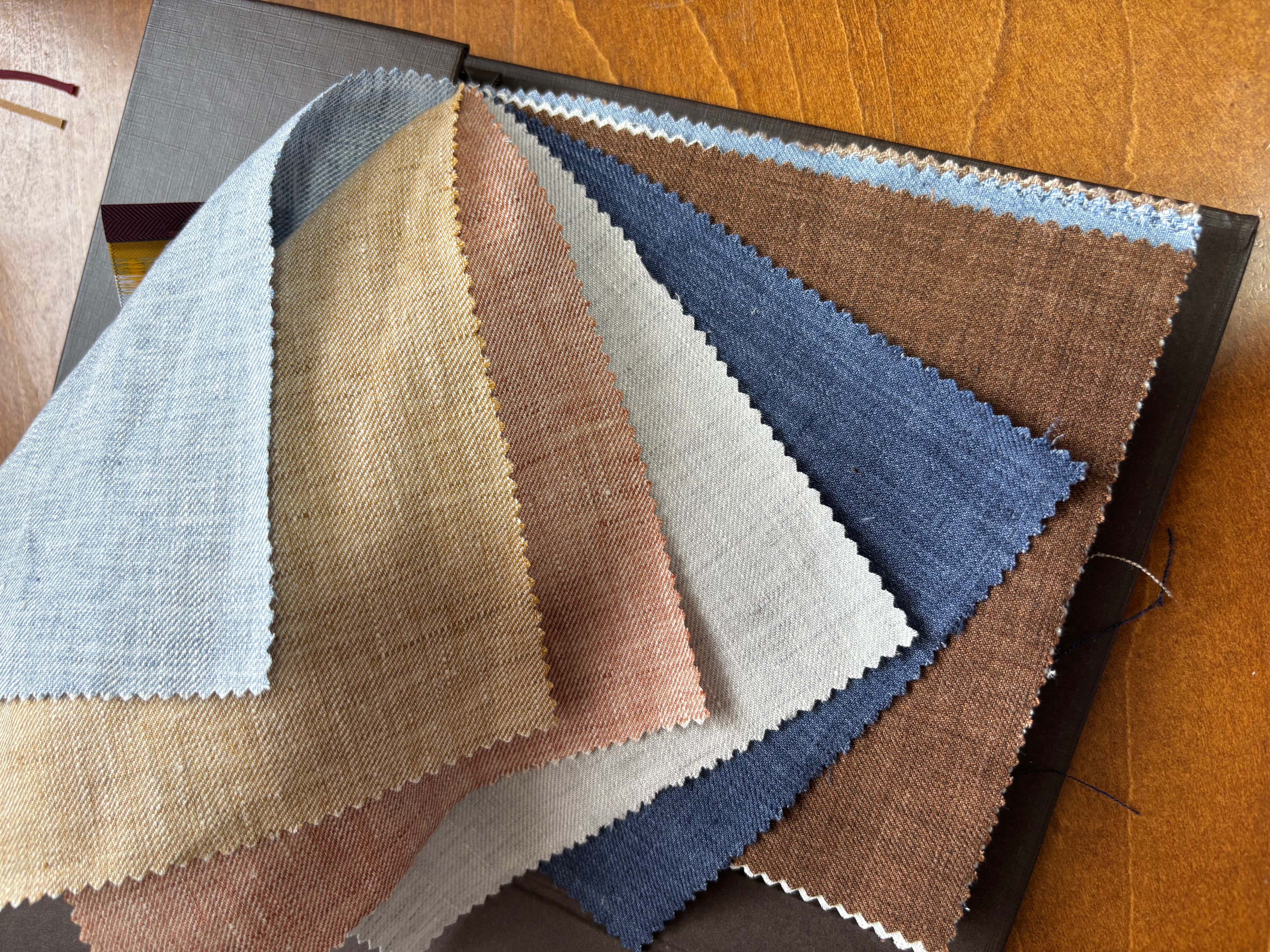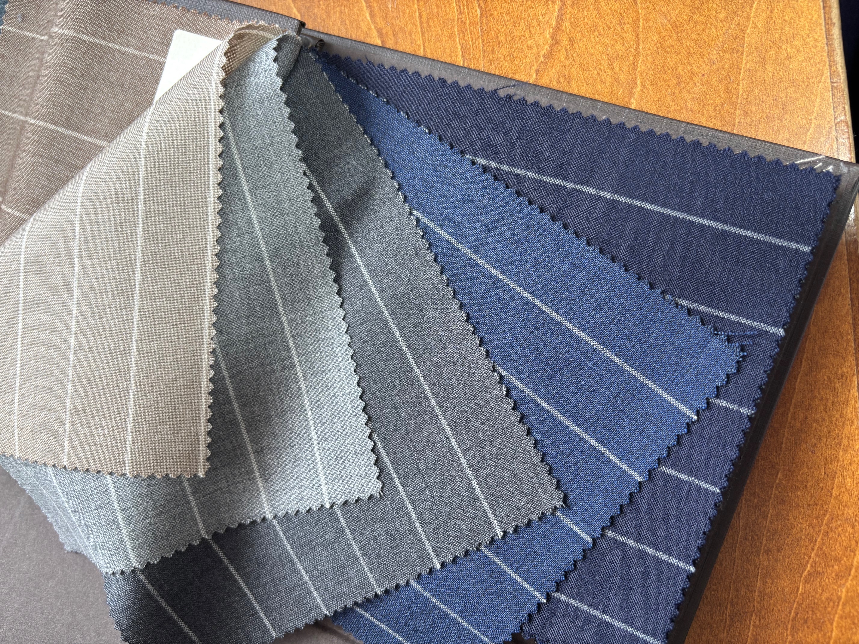 ダブルブレザーも復活トレンドの兆しで、カラーはネイビーはもちろんですが、ブルー・オーシャンではブラウンやベージュ(に金ボタン!)もおすすめしています。上品でお洒落なブレザーが仕立てあがります