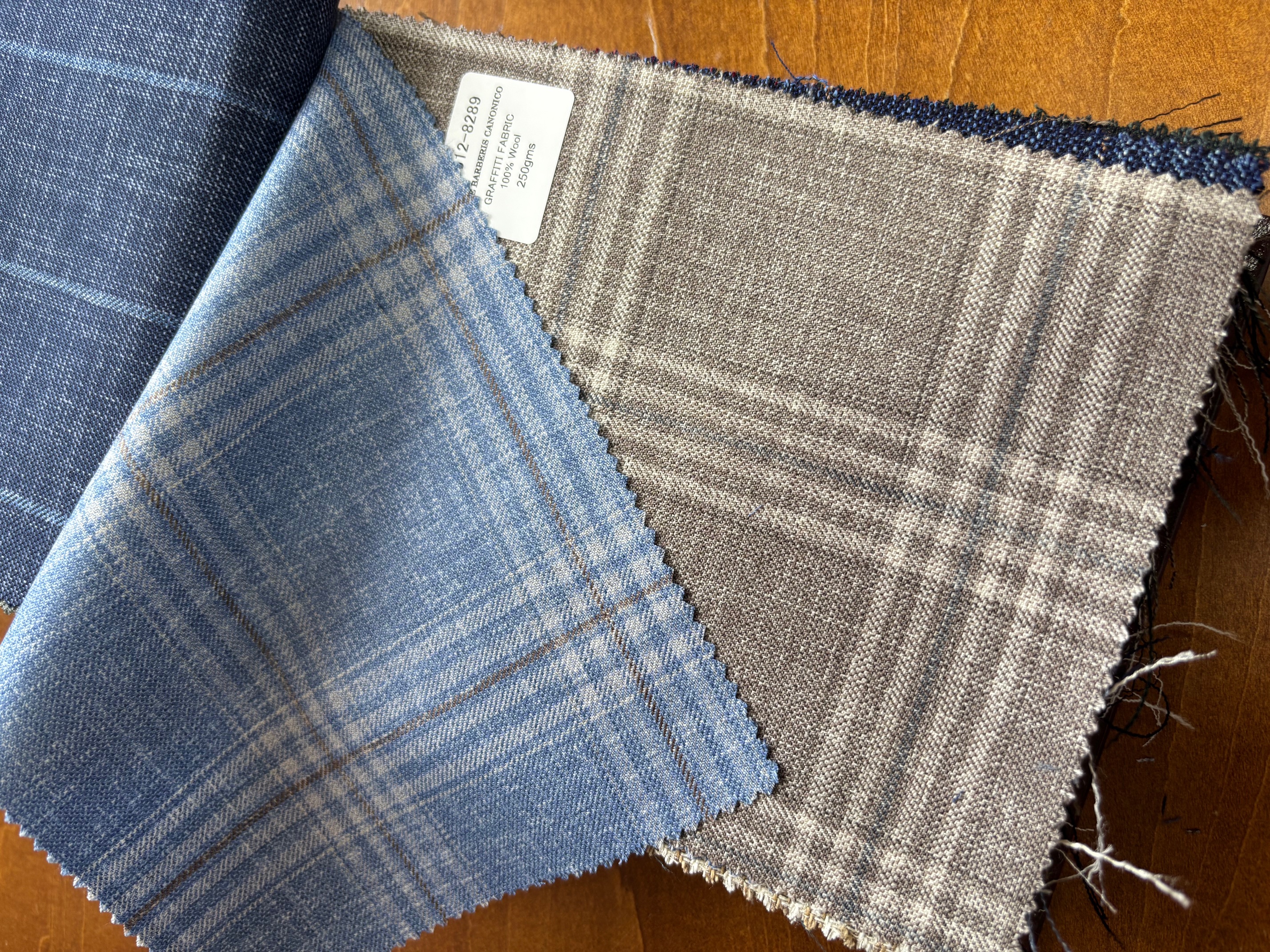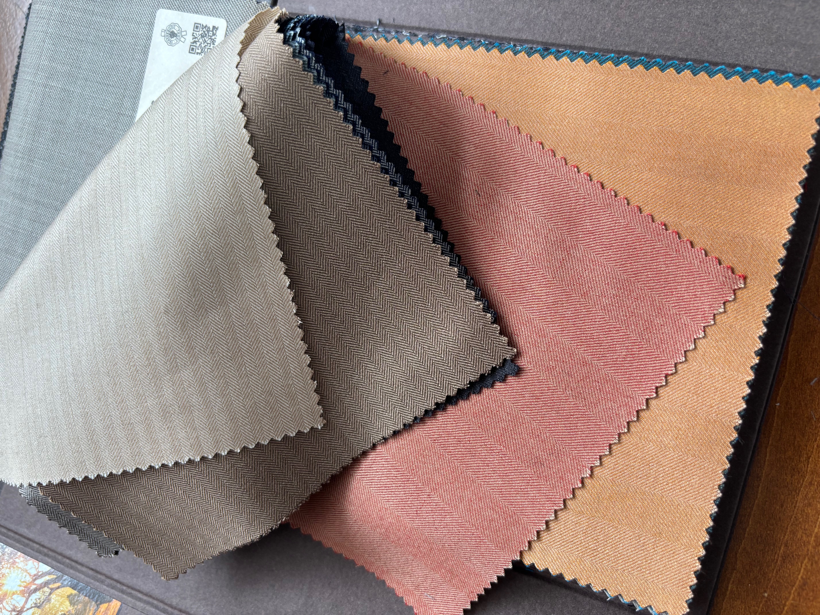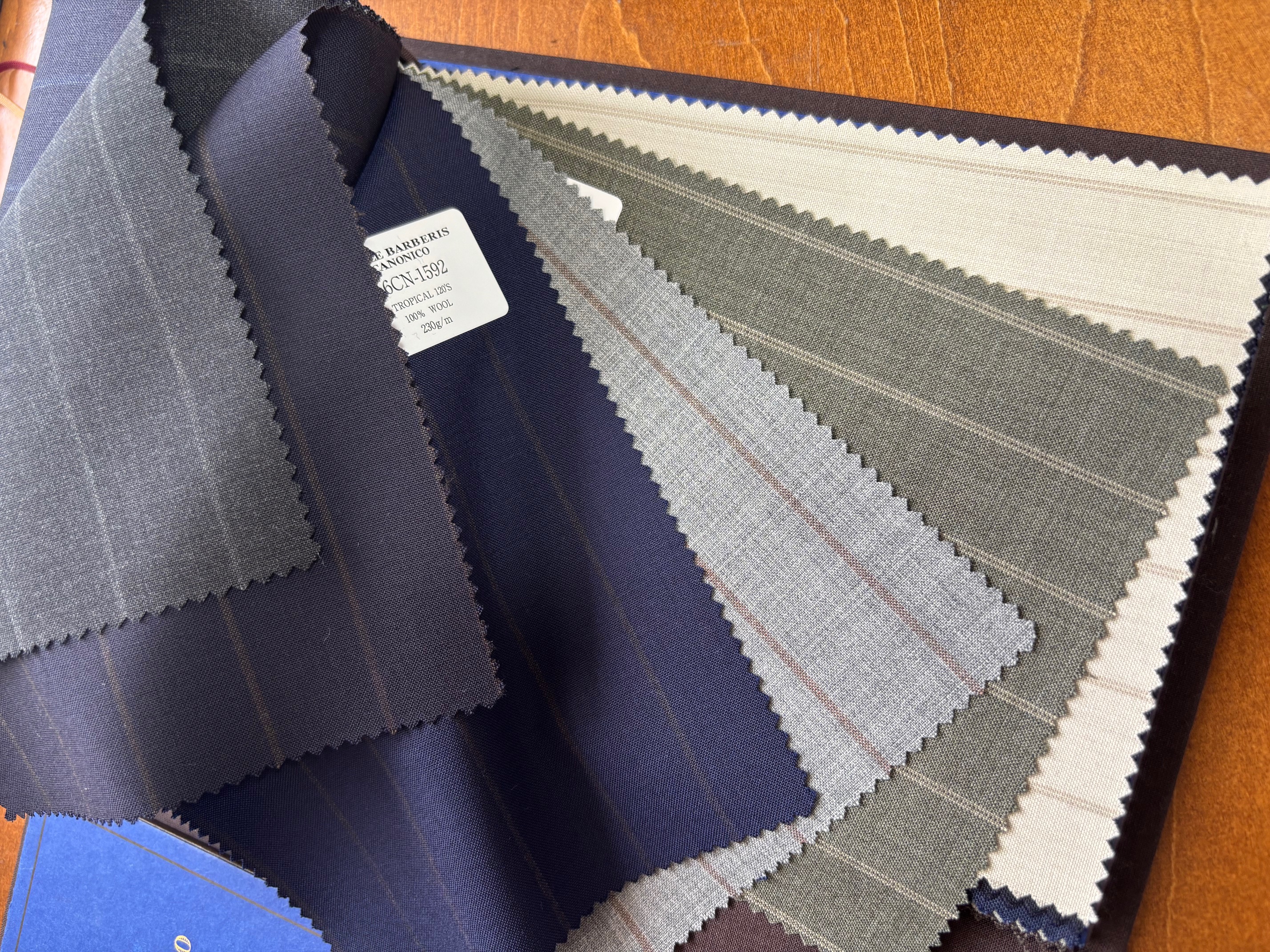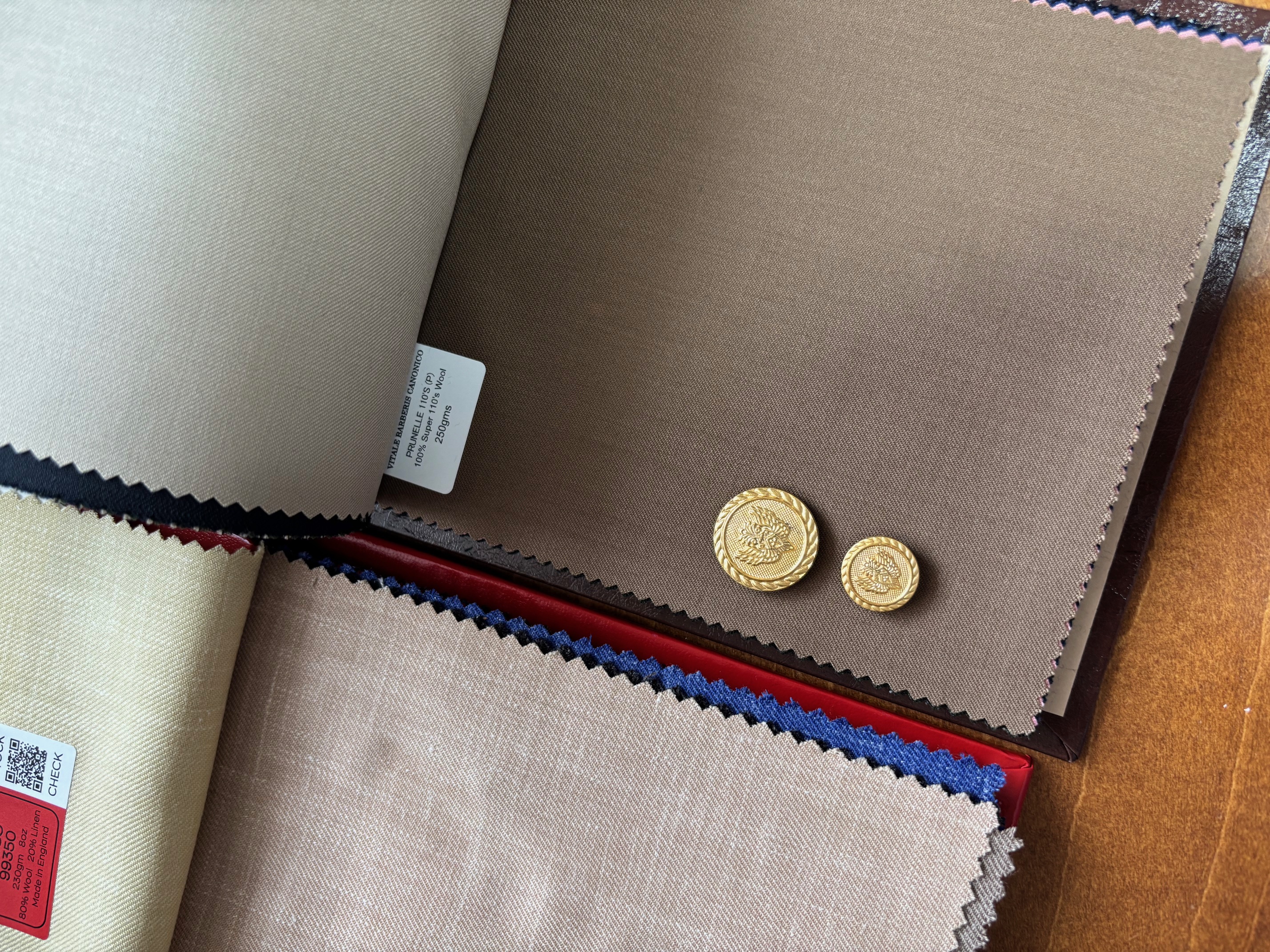 ダブルブレザーも復活トレンドの兆しで、カラーはネイビーはもちろんですが、ブルー・オーシャンではブラウンやベージュ(に金ボタン!)もおすすめしています。上品でお洒落なブレザーが仕立てあがります