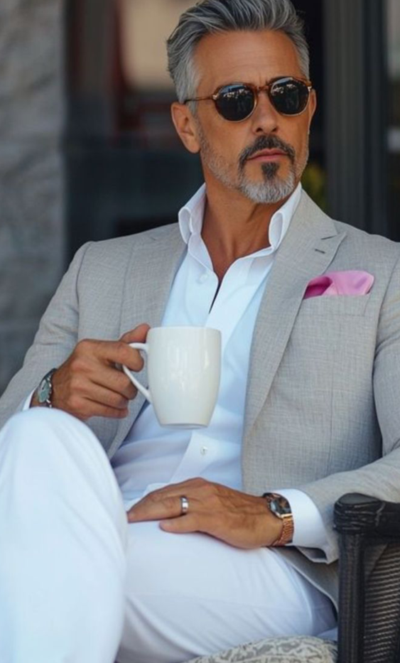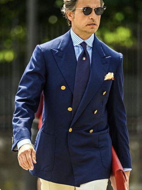 夏の定番素材のシアサッカーもダブルスタイルで仕上げると、カジュアルな雰囲気の中に大人の余裕と色気が加わりますね