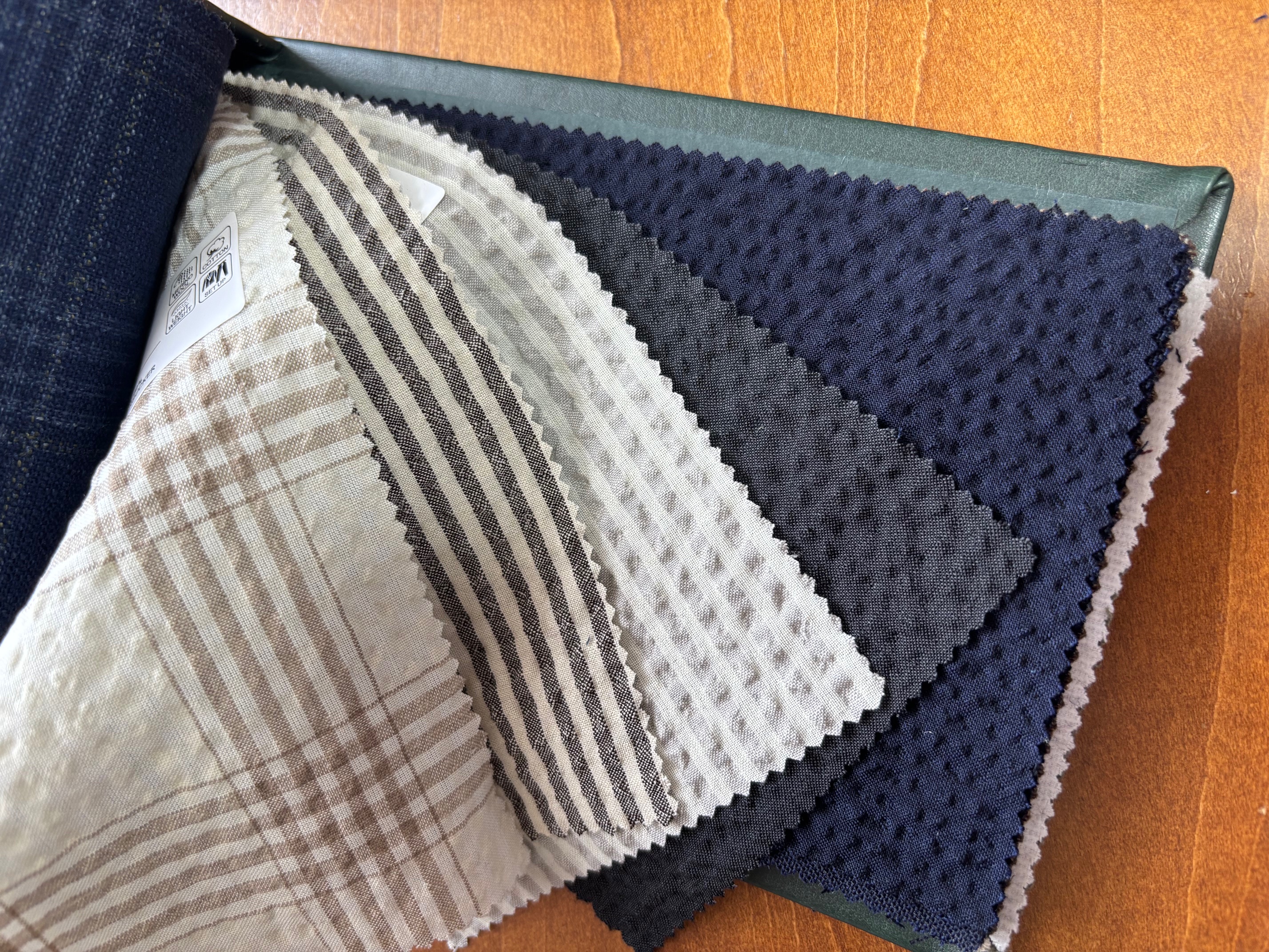 シアサッカーは、リネン(麻)・デニム地とあわせて今季のトレンド素材です