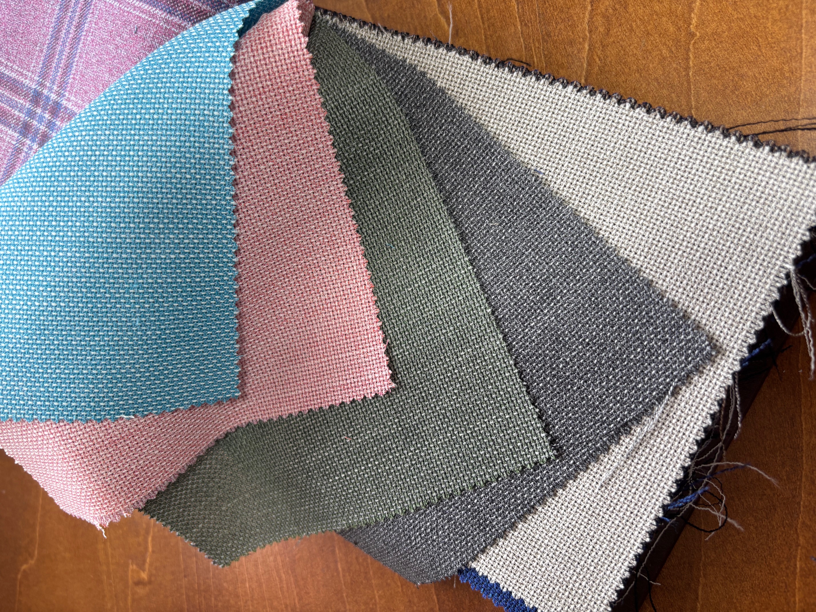 リネン素材を無地だけではなく、ストライプやチェックでオーダーするのも今風な雰囲気が出て素敵です